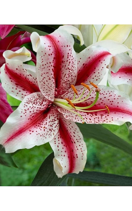 Луковицы лилии тигровой ориентальной.Размер луковицы 12/14.Высота растения: 90-110 см.Производитель: Голландия.Лилия Dizzy имеет красивый двухцветный окрас. Лепестки белые с вишневой полосой по центру и большим количеством крапа того же цвета. Диззи относится к ориентальным или восточным лилиям, кот... →