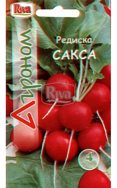 Сакса - скороспелый сорт круглого редиса. Период от посева до уборки - 20-25 дней. Корнеплоды круглые, в диаметре 3-4 см, массой 20-25 грамм, выровненные по форме, ярко-красного цвета, длительный период сохраняют товарные качества. Мякоть у корнеплодов сорта Сакса - плотная, белая и одновременно нежная, сочная. Имеет отличные товарные качества. Сорт выделяется высокой урожайностью и одновременной отдачей урожая. Купить семена Редиса Сакса оптом и в розницу в Украине Вы можете у нас на сайте с доставкой почтой.