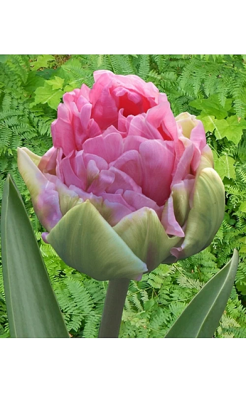 Тюльпан Justina (Джастіна) - один з самих нових махрових сортів, рожево-бузкового кольору. Великі пишні квіти за своєю формою нагадують піони. Забарвлення: благородна рожево-бузкова з зеленими прожилками по зовнішнім пелюсток. Відтінок кольору - ексклюзивний, холодний. Квітка виглядає як «холодну полум'я». Сорт групи Махрові пізні, 11 клас.