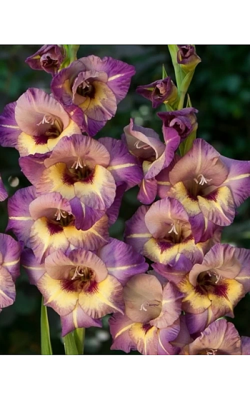 Цибулини гладіолуса Qui Vive. Висота рослини: 100-120 см. Розмір цибулини: 10/12. Виробник: Голландія. Гладіолус великоквітковий Qui Vive (Кі Вів) - це ефектний біколор, зовнішні пелюстки якого лавандово-лілові з жовтим розчерком по основній прожилками. Внутрішні пелюстки у Qui Vive (Кі Вів) о... →