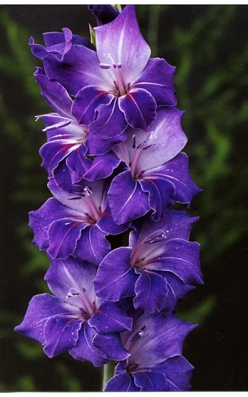 Крупноквітковий гладіолус Violetta (Віолетта) - вишуканий, темно синій, з фіолетовими світлішими переливами ближче до центру квітки. По центру вздовж пелюсток випукла тоненька світла смуга, край пелюсток — з ледь помітною хвилею. На рослині одночасно розкривається 5-7 бутонів, за сезон до 20-25 бутонів. Висадку цибулин гладіолусів проводять у травні, коли стане дуже тепло, температура ґрунту + 10°С.