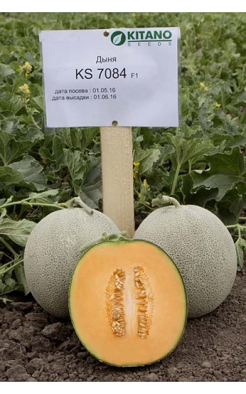 Диня KS 7084 F1 - це середньостиглий гібрид солодкої дині типу apanese (Джапанес). Диня KS 7084 F1 формує соковиті та смачні плоди, вміст цукру 14-15%. Має відмінну транспортабельність. Диня KS 7084 F1 добре підходить для вирощування в жарких та посушливих умовах. Підходить для відкритого та закритого ґрунту.