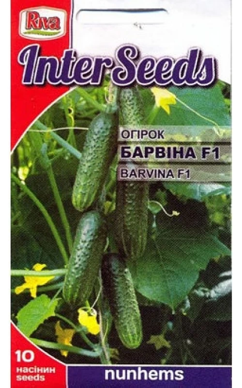 Насіння огірка Барвіна F1 (Barvina F1). Виробник Nunhems Zaden (Голландія). Ранній (38-40 днів), самозапильний гібрид огірка.