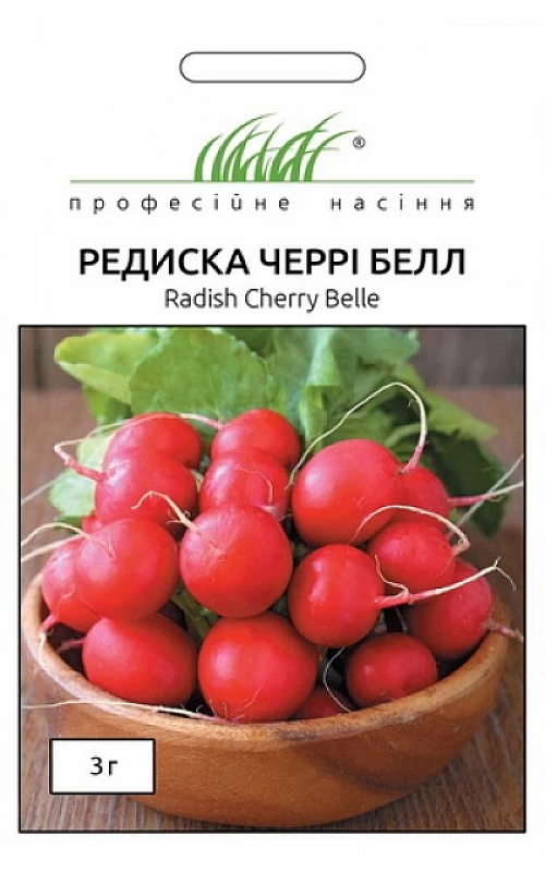 Черрі Белл - ранній (25-30 днів після посіву) високоврожайний сорт редису. Коренеплоди вирівняні, однорідні, діаметром 2,5-3 см, яскравого червоного кольору. М'якоть білосніжна, соковита, щільна, слабоострий. Сорт редиски Черрі Белл відмінний для вирощування у весняно-літній та осінньо-зимовий періоди у відкритому грунті і плівкових теплицях.